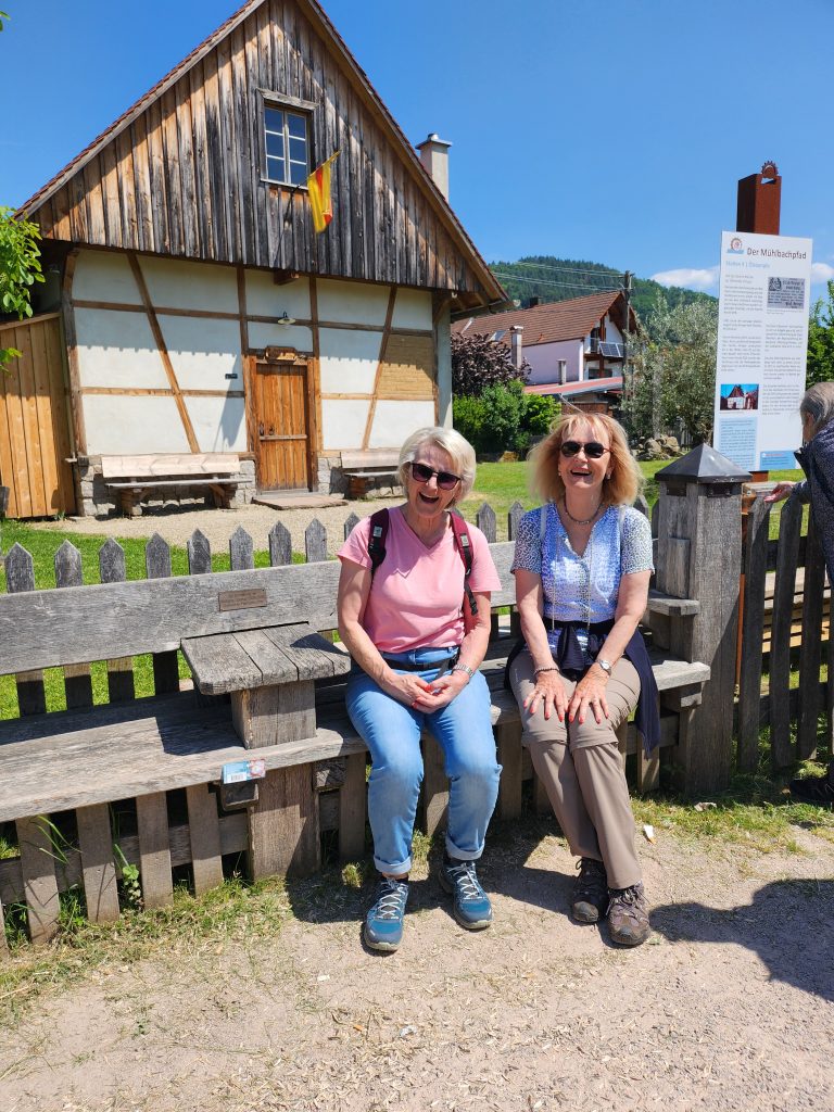 Schon gegen Mittag startete am Anfahrtstag die erste, noch gemütliche Wanderung vom Bahnhof Oberkirch zum Nachbarort Lautenbach. Auf dem Mühlbachpfad führte die Tour vorbei an dem Forellengewässer und bunt blühenden Gärten. Weiter ging es auf dem Lautenbacher Hexensteig entlang dem Flüsschen Rench bis zum Etappenziel, dem Gasthof „Zum Kreuz“. Auf der von einer ausladenden Platane beschatteten Sonnenterrasse konnten sich die müden Wanderer stärken und von dort wieder den Rückweg antreten.
