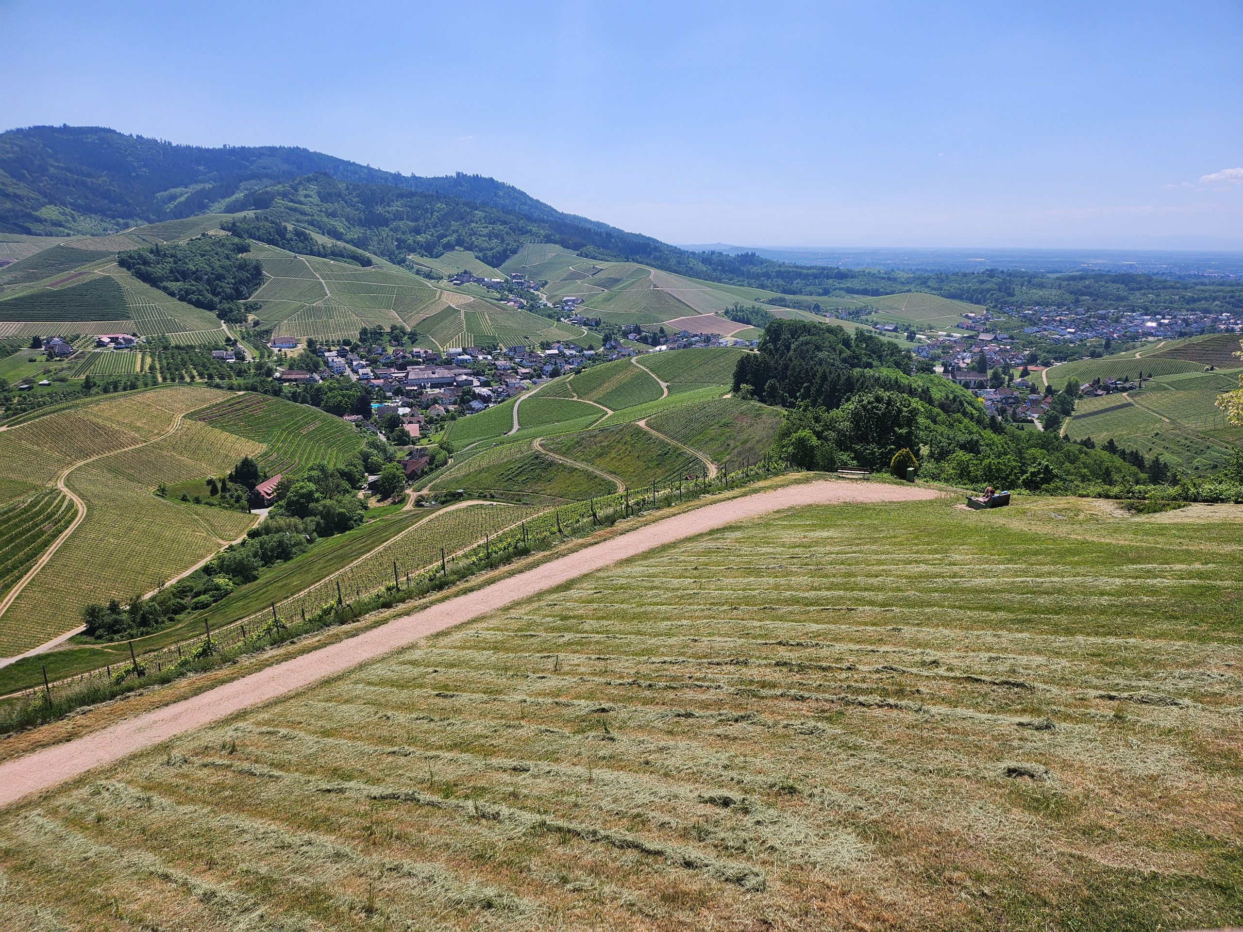 Am letzten Tag wurde noch eine mehrstündige Wanderung über den Brennersteig zum Busseck-Hof und den Geigerskopf-Turm angeboten. Dort hatte man einen faszinierenden Rundumblick über die Vorbergzone im Schwarzwald mit Sichtachsen ins Renchtal, ins Bottenauer Tal und ins Rheintal, ja selbst Straßburg und die Vogesen waren auszumachen. Auf dem Busseck-Hof stillte ein deftiges Bauernvesper den aufkommenden Hunger und natürlich durfte neben einem begleitenden guten Tropfen Wein auch eine Kostprobe des Edelbrands Zibärtle nicht fehlen.